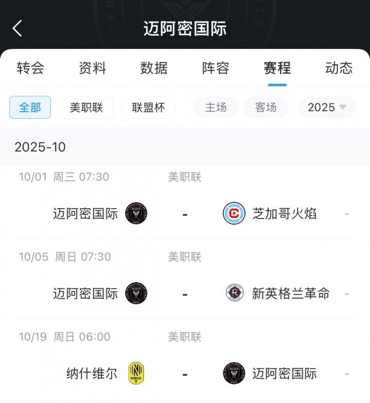 当前迈阿密国际还有9场美职联常规赛比赛,目前迈阿密少赛4场暂时排在美职联东区第6,与东区第一的分差为11分。
