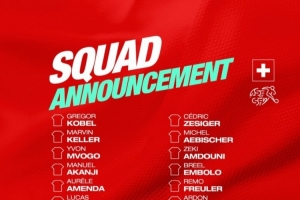 体育资讯5月23日讯 瑞士国家队将在6月份前往美国进行两场友谊赛,新一期国家队的大名单在本周四公布,其中三月份缺席的扎卡、阿坎吉回归。