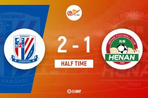 上半场伤停补时7分钟,半场结束,上海申花暂2-1河南。